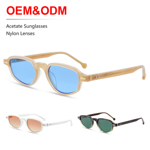 Unico rivetto struttura Vintage occhio di gatto piccole montature poligono lenti in Nylon fatte a mano acetato Fraem Unisex occhiali da sole retrò