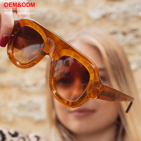 Tendenze della moda pronte per la spedizione Lentes De Sol ovali Cool UV occhiali protettivi Vintage spessi in acetato occhiali da sole firmati