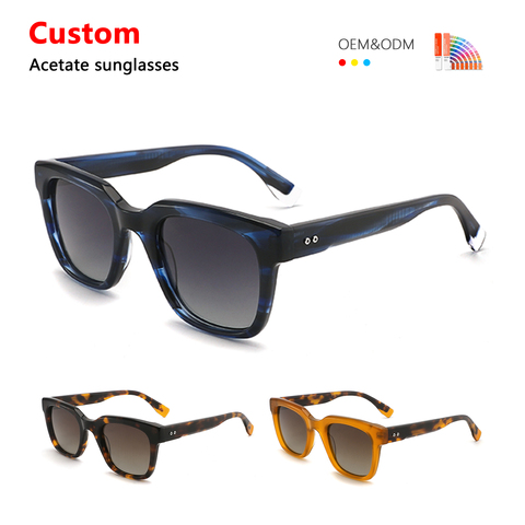 Commercio all'ingrosso di alta qualità OEM ODM polarizzato UV400 TAC lenti occhiali da sole donne uomini fatto a mano rettangolo retrò acetato occhiali da sole